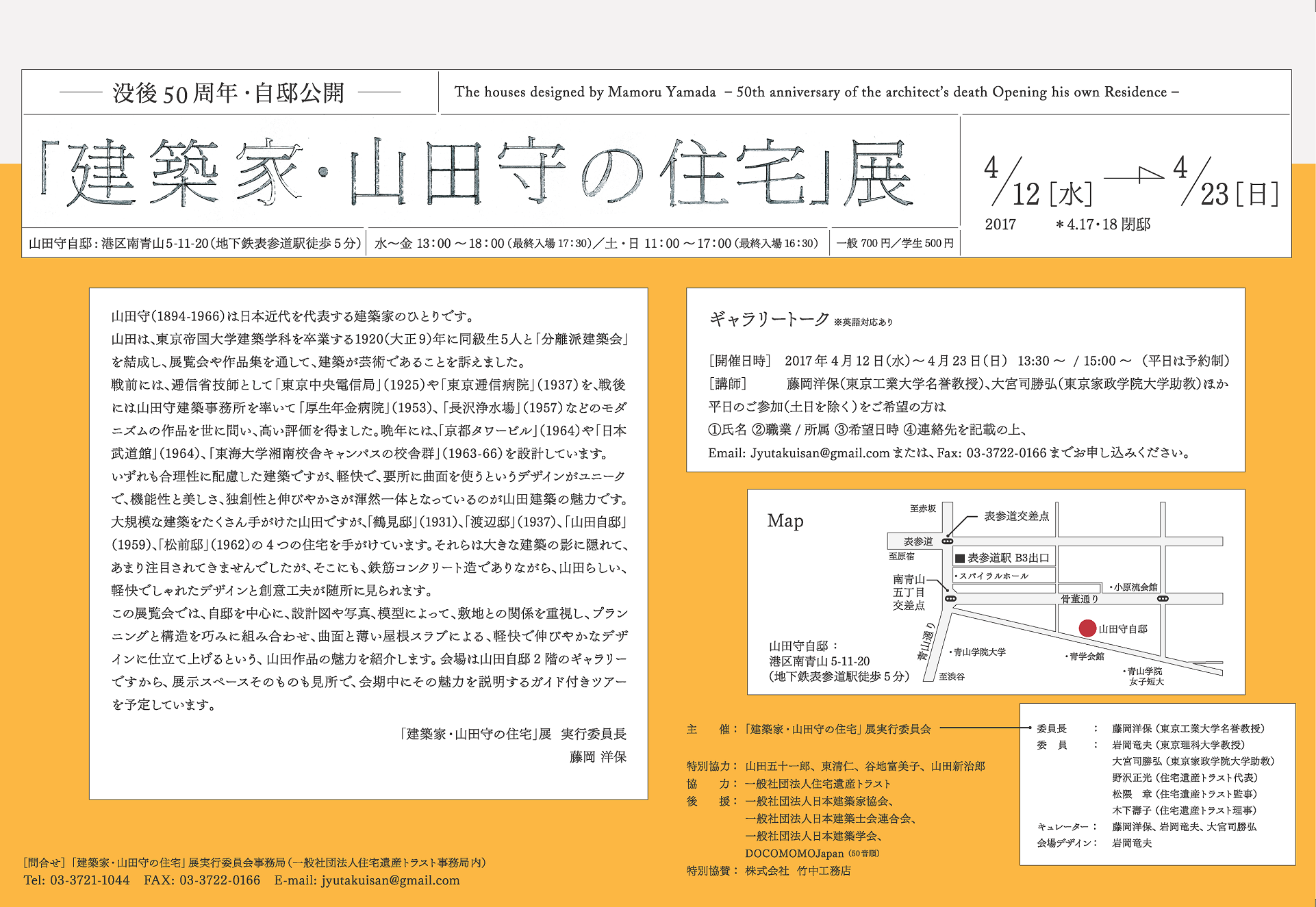 主 催:「建築家・山田守の住宅」展 実行委員会(委員長 藤岡洋保)