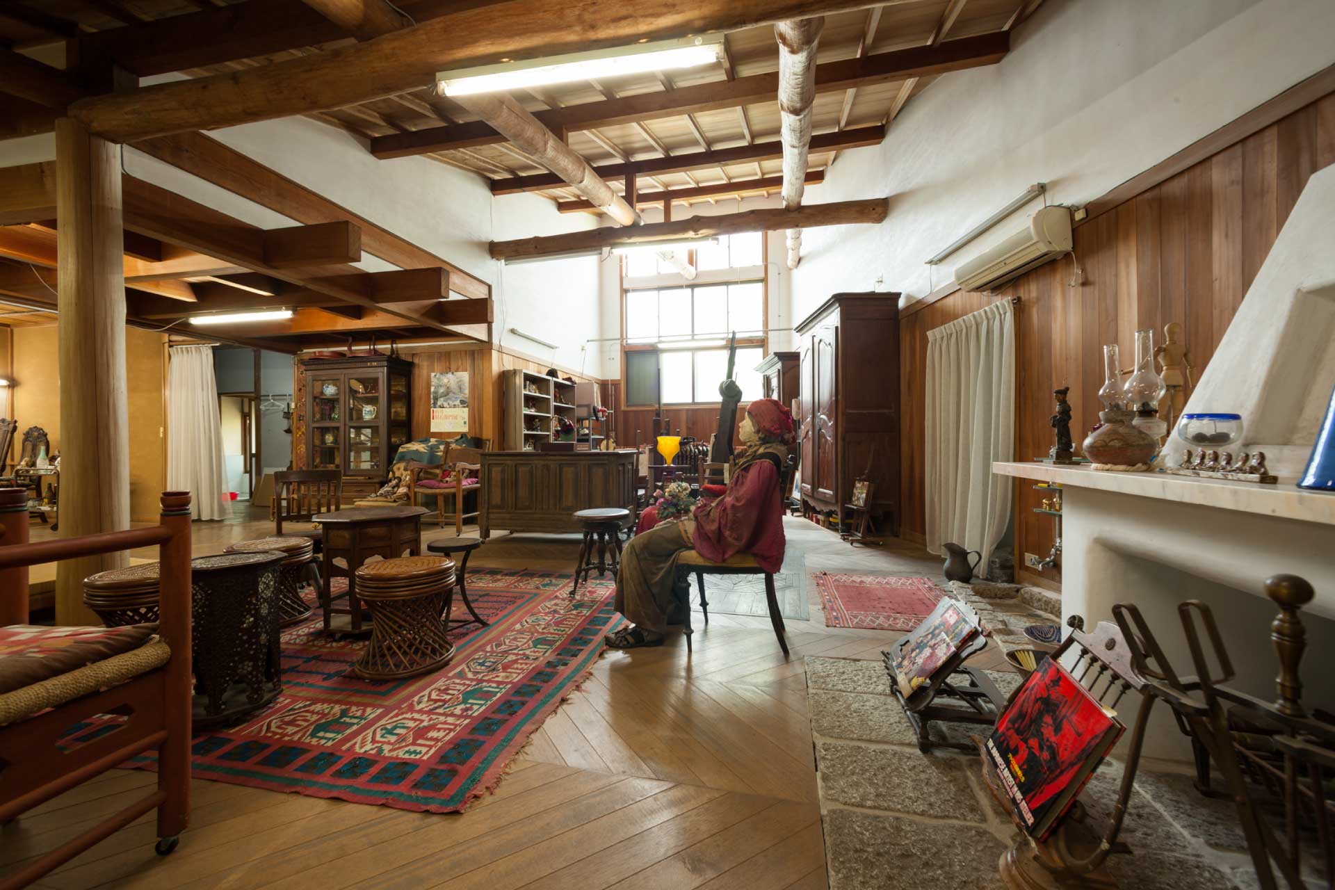 アトリエには、お気に入りの品々が集められた。腰掛ける等身大のモデル人形は洋画家・岡田三郎助から、マントルピースの天板の大理石は、彫刻家・舟越保武から譲り受けたという。