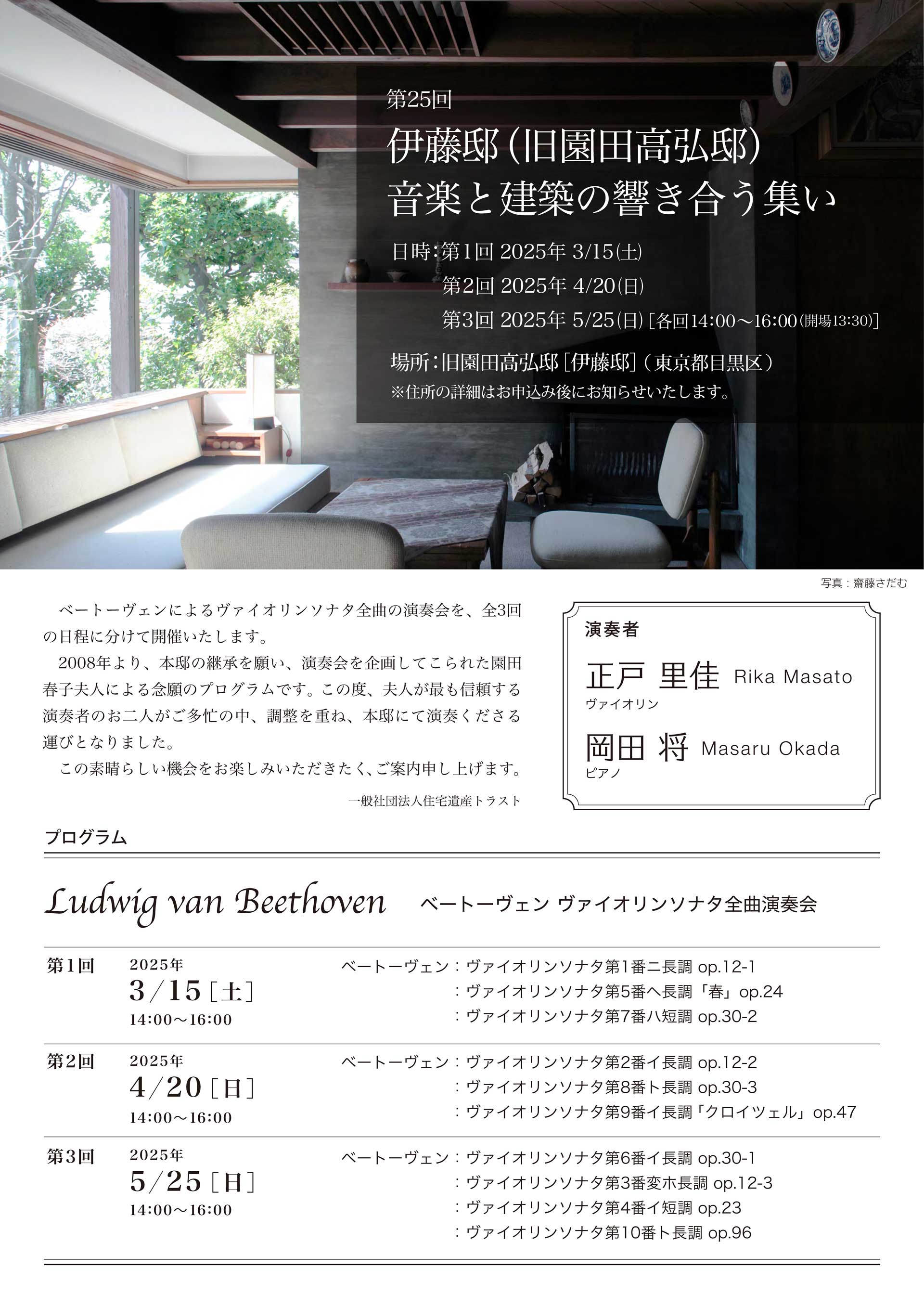 ご案内:伊藤邸(旧園田高弘邸)演奏会:3月15日(土)4月20日(日)、5月25日(日)全回満席となりました。ありがとうございました。