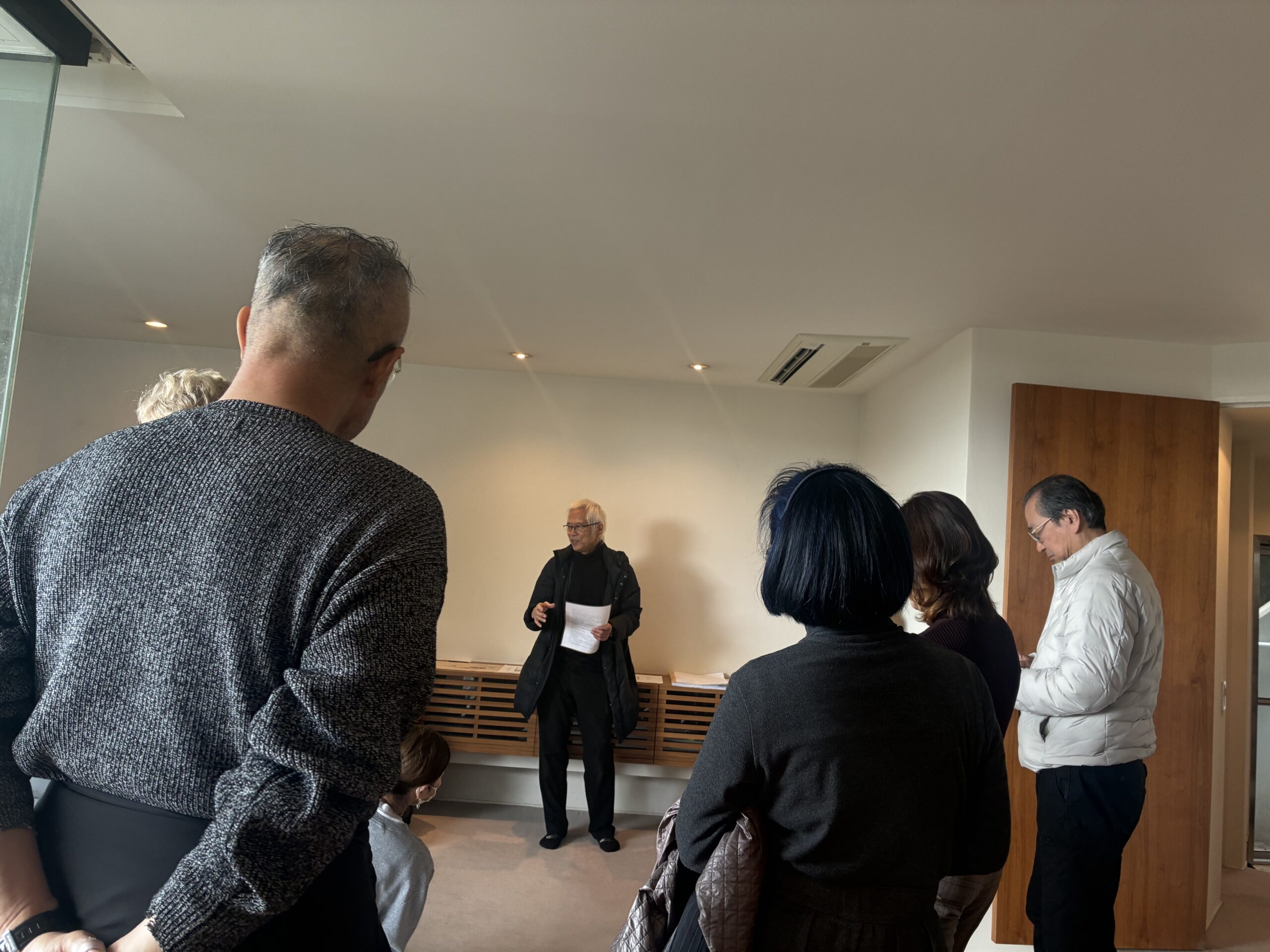 2月26日、5代目の継承者を迎えたブルーボックスハウスにて、見学会(HHT会員)を開催。途中から、宮脇檀事務所で本邸を担当された椎名英二氏も登場されて当時の貴重なお話をうかがいました。これから椎名氏によるメンテナンスがスタートします。